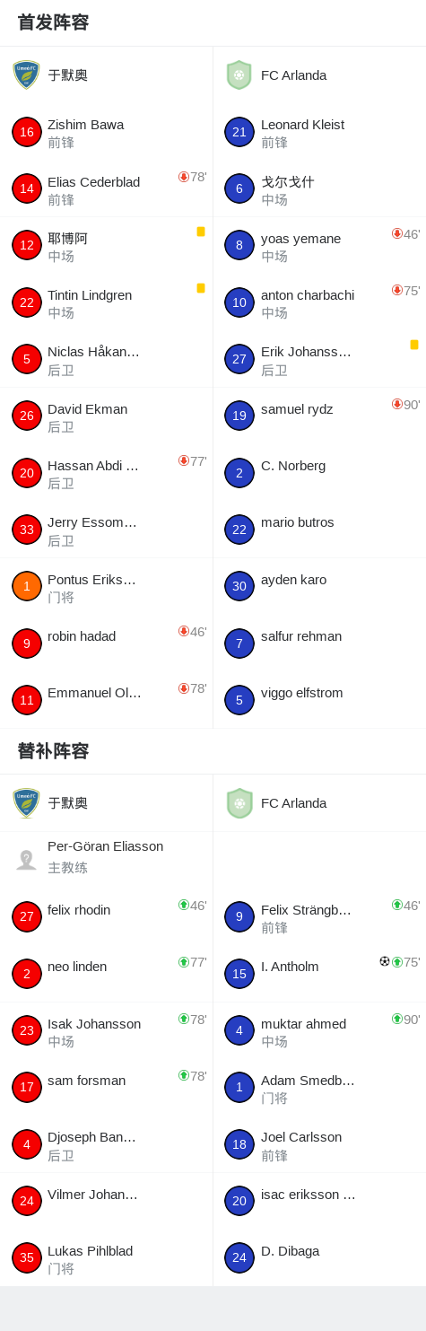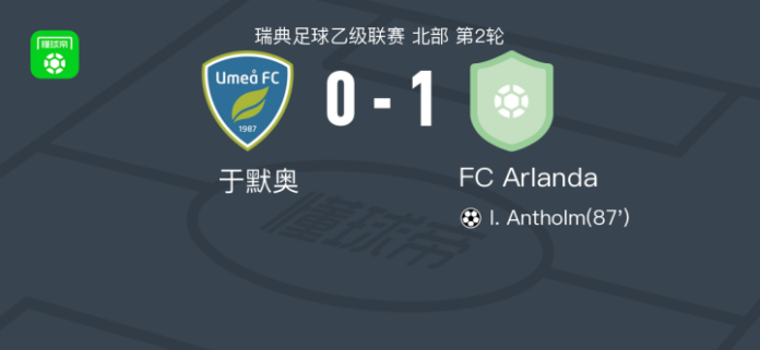 FC Arlanda1-0于默奥,I. Antholm绝杀 足球资讯 发布时间: 2026年4月12日 阅读时间: 少于1 分钟 FacebookXPinterestWhatsApp FC Arlanda1-0于默奥,I. Antholm绝杀 北京时间4月12日瑞典足球乙级联赛 北部 第2轮,于默奥主场对阵FC Arlanda。FC ArlandaI. Antholm破门。最终比分于默奥 0–1 FC Arlanda。 点击查看本场比赛详细数据>> 精彩瞬间 第87分钟,FC Arlanda球员Leonard Kleist助攻I. Antholm打入一球。 球队阵容 技术统计 FacebookXPinterestWhatsApp 1823100https://1823100.com 红单推荐 002 欧联 诺丁汉vs波尔图 红单推荐 2026年4月16日 001 欧联杯 塞尔塔vs弗莱堡 红单推荐 2026年4月16日 006 欧冠 拜仁vs皇马 红单推荐 2026年4月15日 003 欧冠 利物浦vs巴黎圣日耳曼 红单推荐 2026年4月14日 005 英超 曼联vs利兹联 红单推荐 2026年4月13日 热门资讯 003 欧冠 利物浦vs巴黎圣日耳曼 红单推荐 2026年4月14日 006 欧冠 拜仁vs皇马 红单推荐 2026年4月15日 002 欧协联 巴列卡诺vs雅典AEK 红单推荐 2026年4月9日 013 英超 西汉姆联vs狼队 红单推荐 2026年4月10日 001 欧联杯 塞尔塔vs弗莱堡 红单推荐 2026年4月16日