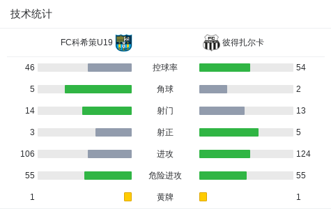 第40分钟,FC科希策U19球员David Petrik打入一球。