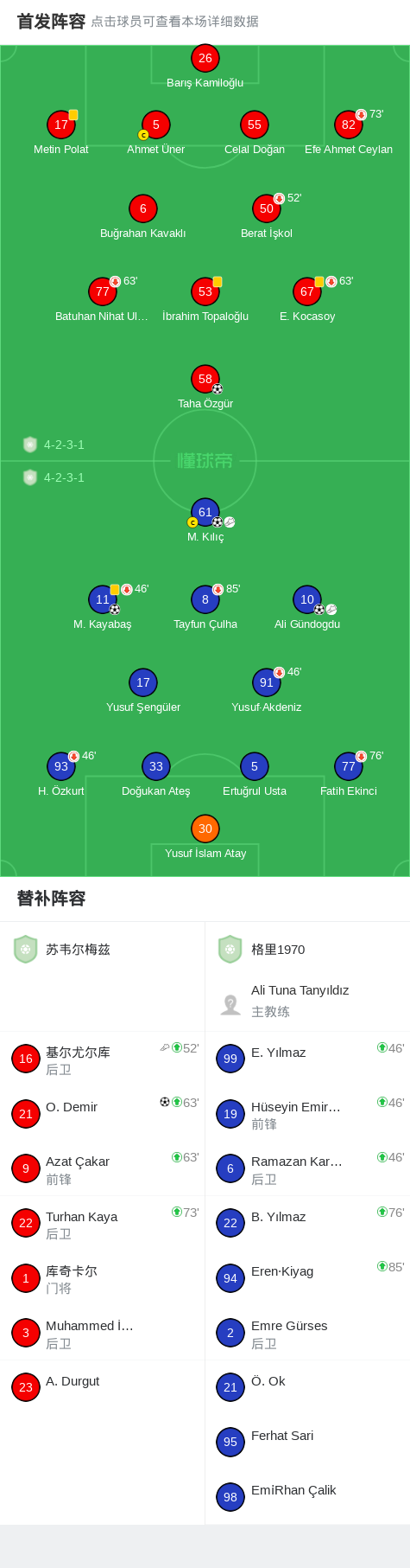 下半场补时第3分钟,格里1970球员M. Kılıç助攻Ali Gündogdu打入一球。
