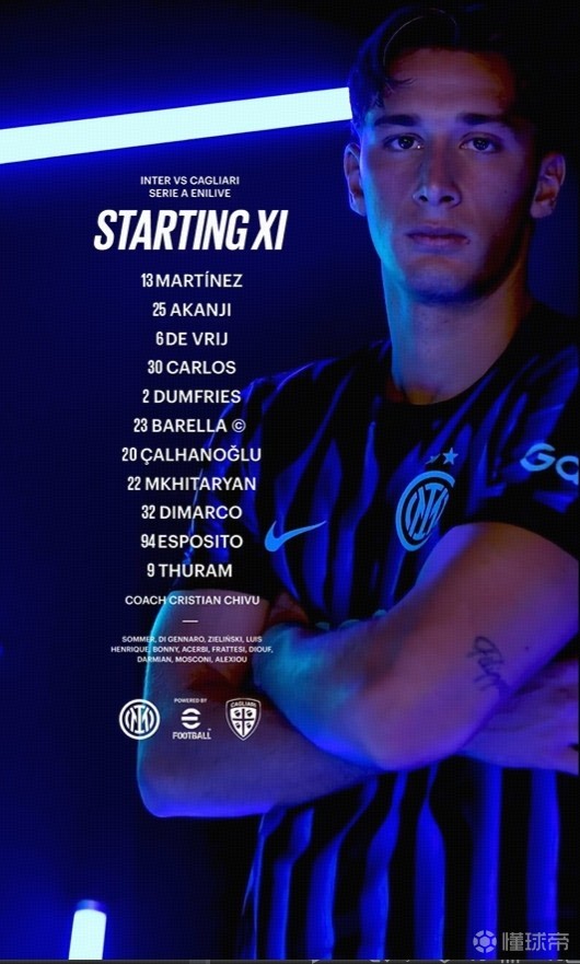 国米vs卡利亚里:皮奥PK塞巴,巴雷拉、姆希塔良出战 足球资讯 发布时间: 2026年4月18日 阅读时间: 少于1 分钟 FacebookXPinterestWhatsApp 国米vs卡利亚里:图拉姆搭档皮奥,巴雷拉、姆希塔良出战 北京时间4月18日02:45,意甲第33轮的一场较量。国米坐镇主场,迎战卡利亚里。赛前,国米的阵容公布如下: FacebookXPinterestWhatsApp 1823100https://1823100.com 红单推荐 007 意杯 国际米兰vs科莫 红单推荐 2026年4月21日 005 西甲 毕尔巴鄂竞技vs奥萨苏纳 红单推荐 2026年4月21日 001 意甲 莱切vs佛罗伦萨 红单推荐 2026年4月20日 003 英超 水晶宫vs西汉姆联 红单推荐 2026年4月20日 019 英超 曼城vs阿森纳 红单推荐 2026年4月19日 热门资讯 001 意甲 莱切vs佛罗伦萨 红单推荐 2026年4月20日 023 英超 利物浦vs富勒姆 红单推荐 2026年4月11日 019 英超 曼城vs阿森纳 红单推荐 2026年4月19日 007 意杯 国际米兰vs科莫 红单推荐 2026年4月21日 007 英冠 伊普斯维奇vs米德尔斯堡 红单推荐 2026年4月19日