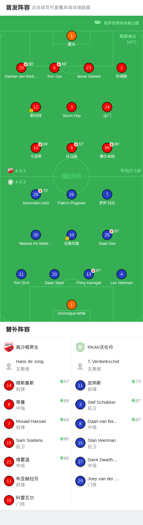 高沙根男生0-0RKAV沃伦丹,双方互交白卷 足球资讯 发布时间: 2026年4月19日 阅读时间: 少于1 分钟 FacebookXPinterestWhatsApp 高沙根男生0-0RKAV沃伦丹,双方互交白卷 北京时间4月18日荷兰丙级联赛 联赛 第30轮,高沙根男生主场对阵RKAV沃伦丹。最终比分高沙根男生 0–0 RKAV沃伦丹。 点击查看本场比赛详细数据>> 球队阵容 技术统计 FacebookXPinterestWhatsApp 1823100https://1823100.com 红单推荐 009 挪超 博德闪耀vs奥勒松 红单推荐 2026年4月18日 024 英超 切尔西vs曼联 红单推荐 2026年4月18日 009 朗斯vs图卢兹 红单推荐 2026年4月17日 008 意甲 国米vs卡利亚里 红单推荐 2026年4月17日 002 欧联 诺丁汉vs波尔图 红单推荐 2026年4月16日 热门资讯 012 英超 诺丁汉森林vs阿斯顿维拉 红单推荐 2026年4月12日 约基奇第198次三双!掘金大胜灰熊豪取10连胜 穆雷26+7+5 篮球资讯 2026年4月9日 008 意甲 国米vs卡利亚里 红单推荐 2026年4月17日 009 朗斯vs图卢兹 红单推荐 2026年4月17日 003 欧冠 利物浦vs巴黎圣日耳曼 红单推荐 2026年4月14日