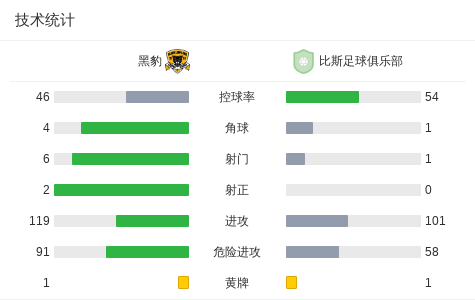 黑豹0-0比斯足球俱乐部,双方互有攻守 足球资讯 发布时间: 2026年4月21日 阅读时间: 少于1 分钟 FacebookXPinterestWhatsApp 黑豹0-0比斯足球俱乐部,双方互有攻守 北京时间4月21日南非甲级联赛 联赛 第26轮,黑豹主场对阵比斯足球俱乐部。最终比分黑豹 0–0 比斯足球俱乐部。 点击查看本场比赛详细数据>> 技术统计 FacebookXPinterestWhatsApp 1823100https://1823100.com 红单推荐 007 意杯 国际米兰vs科莫 红单推荐 2026年4月21日 005 西甲 毕尔巴鄂竞技vs奥萨苏纳 红单推荐 2026年4月21日 001 意甲 莱切vs佛罗伦萨 红单推荐 2026年4月20日 003 英超 水晶宫vs西汉姆联 红单推荐 2026年4月20日 019 英超 曼城vs阿森纳 红单推荐 2026年4月19日 热门资讯 001 欧联杯 塞尔塔vs弗莱堡 红单推荐 2026年4月16日 002 欧联 诺丁汉vs波尔图 红单推荐 2026年4月16日 001 意甲 莱切vs佛罗伦萨 红单推荐 2026年4月20日 023 英超 利物浦vs富勒姆 红单推荐 2026年4月11日 005 英超 曼联vs利兹联 红单推荐 2026年4月13日
