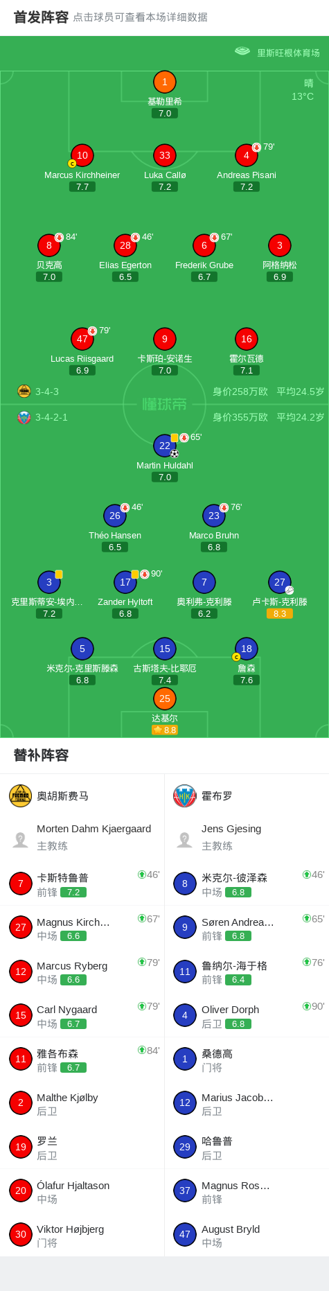 霍布罗1-0奥胡斯费马,Martin Huldahl一击制胜