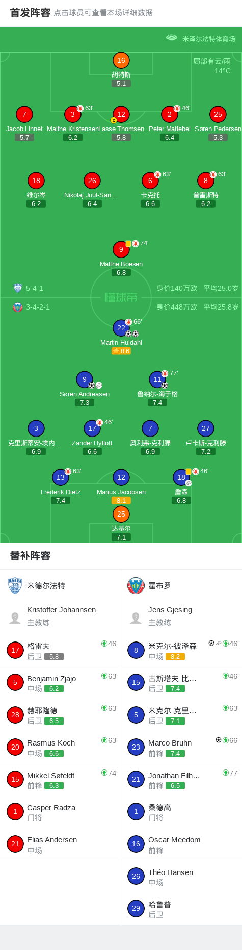 第56分钟,霍布罗球员米克尔-彼泽森助攻Martin Huldahl打入一球。