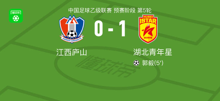 湖北青年星1-0江西庐山,郭毅一剑封喉 足球资讯 发布时间: 2026年4月25日 阅读时间: 少于1 分钟 FacebookXPinterestWhatsApp 湖北青年星1-0江西庐山,郭毅一剑封喉 北京时间4月25日中国足球乙级联赛 预赛阶段 第5轮,江西庐山主场对阵湖北青年星。湖北青年星郭毅破门。最终比分江西庐山 0–1 湖北青年星。 点击查看本场比赛详细数据>> 点击查看中乙完整积分榜>> 精彩瞬间 第5分钟,湖北青年星球员张城骥助攻郭毅打入一球。 球队阵容 FacebookXPinterestWhatsApp 1823100https://1823100.com 红单推荐 021 西甲 奥萨苏纳vs塞维利亚 红单推荐 2026年4月26日 013 英足总杯 切尔西(中)vs利兹联 红单推荐 2026年4月26日 023 英超 阿森纳vs纽卡斯尔 红单推荐 2026年4月25日 016 英超 狼队vs热刺 红单推荐 2026年4月25日 013 英超 桑德兰vs诺丁汉 红单推荐 2026年4月24日 热门资讯 三人20+!火箭21分逆转太阳7连胜 KD24分阿门22+11+8 篮球资讯 2026年4月8日 约基奇第198次三双!掘金大胜灰熊豪取10连胜 穆雷26+7+5 篮球资讯 2026年4月9日 004 欧冠 巴萨vs马竞 红单推荐 2026年4月8日 002 欧协联 巴列卡诺vs雅典AEK 红单推荐 2026年4月9日 003 欧冠 利物浦vs巴黎圣日耳曼 红单推荐 2026年4月14日