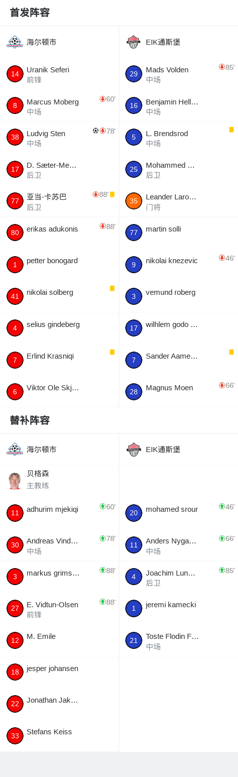 海尔顿市1-0EIK通斯堡,Ludvig Sten助球队取胜 足球资讯 发布时间: 2026年4月12日 阅读时间: 少于1 分钟 FacebookXPinterestWhatsApp 海尔顿市1-0EIK通斯堡,Ludvig Sten助球队取胜 北京时间4月11日挪威足球乙级联赛 A组 第2轮,海尔顿市主场对阵EIK通斯堡。海尔顿市Ludvig Sten破门。最终比分海尔顿市 1–0 EIK通斯堡。 点击查看本场比赛详细数据>> 精彩瞬间 第17分钟,海尔顿市球员Ludvig Sten打入一球。 球队阵容 技术统计 FacebookXPinterestWhatsApp 1823100https://1823100.com 红单推荐 023 英超 阿森纳vs纽卡斯尔 红单推荐 2026年4月25日 016 英超 狼队vs热刺 红单推荐 2026年4月25日 013 英超 桑德兰vs诺丁汉 红单推荐 2026年4月24日 014 西甲 贝蒂斯vs皇马 红单推荐 2026年4月24日 005 西甲 巴列卡诺vs西班牙人 红单推荐 2026年4月23日 热门资讯 023 英超 阿森纳vs纽卡斯尔 红单推荐 2026年4月25日 001 意甲 莱切vs佛罗伦萨 红单推荐 2026年4月20日 003 英超 水晶宫vs西汉姆联 红单推荐 2026年4月20日 013 英超 桑德兰vs诺丁汉 红单推荐 2026年4月24日 001 欧联杯 塞尔塔vs弗莱堡 红单推荐 2026年4月16日