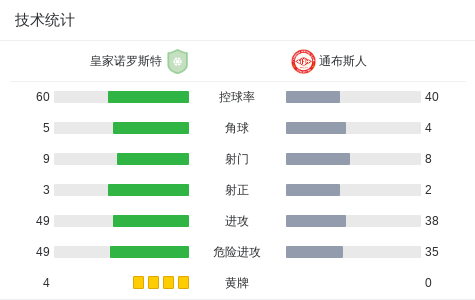 皇家诺罗斯特0-0通布斯人,双方握手言和 足球资讯 发布时间: 2026年4月20日 阅读时间: 少于1 分钟 FacebookXPinterestWhatsApp 皇家诺罗斯特0-0通布斯人,双方握手言和 北京时间4月20日巴丁 联赛 第3轮,皇家诺罗斯特主场对阵通布斯人。最终比分皇家诺罗斯特 0–0 通布斯人。 点击查看本场比赛详细数据>> 技术统计 FacebookXPinterestWhatsApp 1823100https://1823100.com 红单推荐 013 英超 桑德兰vs诺丁汉 红单推荐 2026年4月24日 014 西甲 贝蒂斯vs皇马 红单推荐 2026年4月24日 005 西甲 巴列卡诺vs西班牙人 红单推荐 2026年4月23日 003 西甲 莱万特vs塞维利亚 红单推荐 2026年4月23日 015 西甲 巴萨vs塞尔塔 红单推荐 2026年4月22日 热门资讯 约基奇第198次三双!掘金大胜灰熊豪取10连胜 穆雷26+7+5 篮球资讯 2026年4月9日 三人20+!火箭21分逆转太阳7连胜 KD24分阿门22+11+8 篮球资讯 2026年4月8日 萨拉戈萨U19 0-0乌德山U19,双方握手言和 足球资讯 2026年4月12日 002 欧协联 巴列卡诺vs雅典AEK 红单推荐 2026年4月9日 004 欧冠 巴萨vs马竞 红单推荐 2026年4月8日