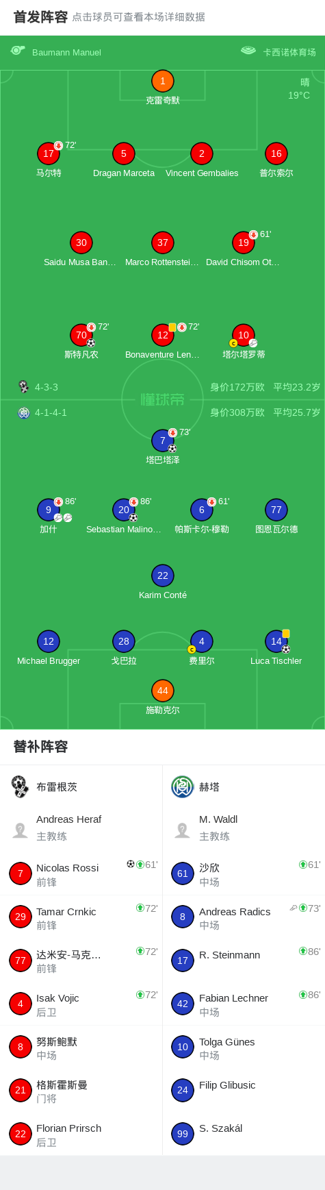 第88分钟,布雷根茨球员塔尔塔罗蒂助攻Nicolas Rossi打入一球。