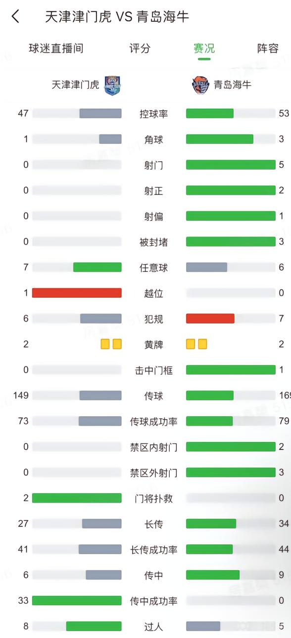 进攻乏力,津门虎对阵海牛半场0射门、0射正 足球资讯 发布时间: 2026年4月13日 阅读时间: 少于1 分钟 FacebookXPinterestWhatsApp 进攻乏力,津门虎对阵海牛半场0射门、0射正 北京时间今天晚间,津门虎坐镇主场迎战青岛海牛,双方上半场战成0-0。 上半场津门虎表现不佳,频频失误,他们在进攻端也束手无策,半场比赛0射门、0射正。 津门虎目前仍然-9分,且难求一胜,深陷降级区。 FacebookXPinterestWhatsApp 1823100https://1823100.com 红单推荐 007 意杯 国际米兰vs科莫 红单推荐 2026年4月21日 005 西甲 毕尔巴鄂竞技vs奥萨苏纳 红单推荐 2026年4月21日 001 意甲 莱切vs佛罗伦萨 红单推荐 2026年4月20日 003 英超 水晶宫vs西汉姆联 红单推荐 2026年4月20日 019 英超 曼城vs阿森纳 红单推荐 2026年4月19日 热门资讯 001 欧联杯 塞尔塔vs弗莱堡 红单推荐 2026年4月16日 002 欧联 诺丁汉vs波尔图 红单推荐 2026年4月16日 001 意甲 莱切vs佛罗伦萨 红单推荐 2026年4月20日 023 英超 利物浦vs富勒姆 红单推荐 2026年4月11日 019 英超 曼城vs阿森纳 红单推荐 2026年4月19日