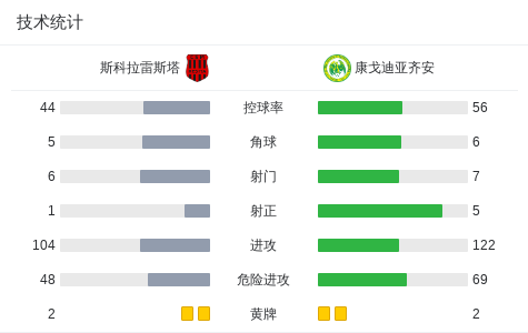 康戈迪亚齐安2-1逆转斯科拉雷斯塔