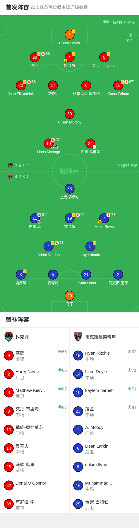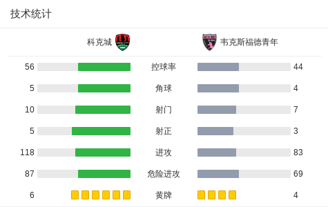 第70分钟,科克城球员Hans Mpongo打入一球。