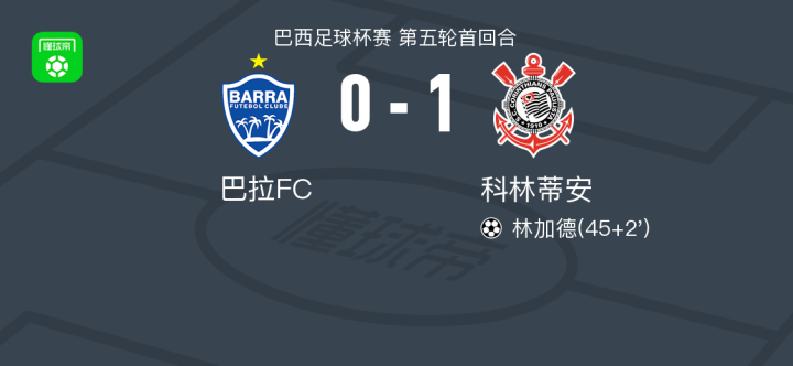 科林蒂安1-0巴拉FC,林加德助球队取胜 足球资讯 发布时间: 2026年4月22日 阅读时间: 少于1 分钟 FacebookXPinterestWhatsApp 科林蒂安1-0巴拉FC,林加德助球队取胜 北京时间4月22日巴西足球杯赛 第五轮首回合,巴拉FC对阵科林蒂安。科林蒂安林加德破门。最终比分巴拉FC 0–1 科林蒂安。 点击查看本场比赛详细数据>> 点击查看巴西杯完整积分榜>> 精彩瞬间 上半场补时第2分钟,科林蒂安球员佩德罗-劳尔助攻林加德打入一球。 球队阵容 技术统计 FacebookXPinterestWhatsApp 1823100https://1823100.com 红单推荐 023 英超 阿森纳vs纽卡斯尔 红单推荐 2026年4月25日 016 英超 狼队vs热刺 红单推荐 2026年4月25日 013 英超 桑德兰vs诺丁汉 红单推荐 2026年4月24日 014 西甲 贝蒂斯vs皇马 红单推荐 2026年4月24日 005 西甲 巴列卡诺vs西班牙人 红单推荐 2026年4月23日 热门资讯 001 欧联杯 塞尔塔vs弗莱堡 红单推荐 2026年4月16日 002 欧联 诺丁汉vs波尔图 红单推荐 2026年4月16日 三人20+!火箭21分逆转太阳7连胜 KD24分阿门22+11+8 篮球资讯 2026年4月8日 约基奇第198次三双!掘金大胜灰熊豪取10连胜 穆雷26+7+5 篮球资讯 2026年4月9日 023 英超 阿森纳vs纽卡斯尔 红单推荐 2026年4月25日