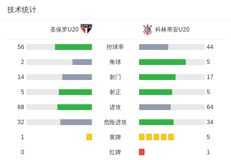 第55分钟,科林蒂安U20球队吃到红牌。