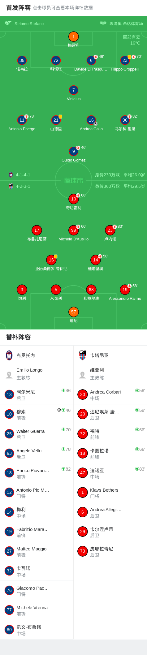 第43分钟,克罗托内球员Andrea Gallo打入一球。