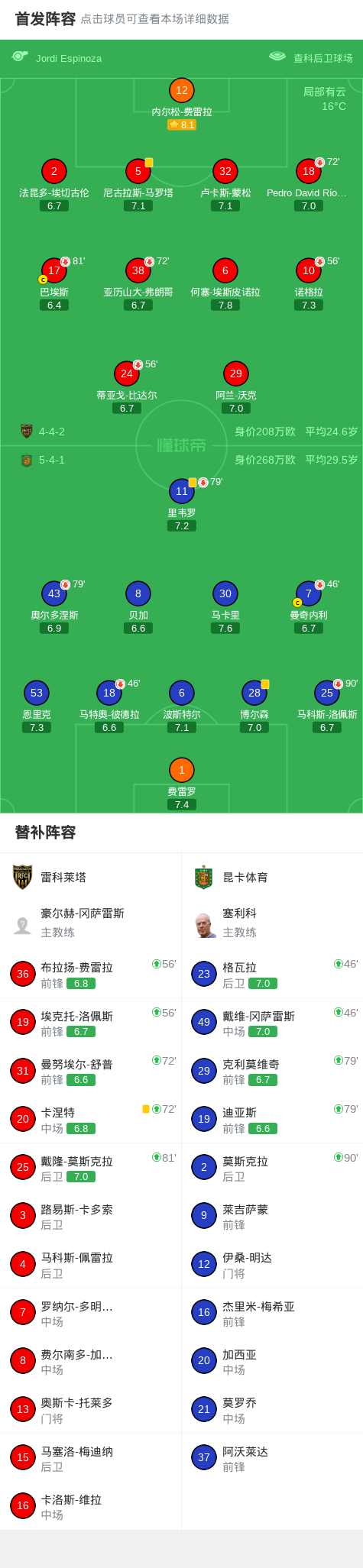 签到 欢迎!登录你的帐户 您的用户名 您的密码 忘记密码了吗?得到帮助 创建一个帐户 创建一个帐户 欢迎!注册一个帐户 您的电子邮件 您的用户名 密码将通过电子邮件发送给您。 找回密码 恢复您的密码 您的电子邮件 密码将通过电子邮件发送给您。 雷科莱塔0-0昆卡体育,奥尔多涅斯错失良机 足球资讯 发布时间: 2026年4月29日 雷科莱塔0-0昆卡体育,奥尔多涅斯错失良机 北京时间4月29日南美洲球会杯 小组赛 第3轮,雷科莱塔对阵昆卡体育。最终比分雷科莱塔 0–0 昆卡体育。 点击查看本场比赛详细数据>> 点击查看南球杯完整积分榜>> 球队阵容 技术统计 留下评论 登录后即可发表评论 评论 (0)还没有人留下宝贵的评论~ 红单推荐 003 英冠 南安普顿vs伊普斯维奇 红单推荐 2026年4月28日 0 004 欧冠 巴黎圣曼vs拜仁 红单推荐 2026年4月28日 0 007 英超 曼联vs布伦特 红单推荐 2026年4月27日 0 008 西甲 西班牙人vs莱万特 红单推荐 2026年4月27日 0 021 西甲 奥萨苏纳vs塞维利亚 红单推荐 2026年4月26日 0 热门资讯 马鲁特联7-0狂胜PSBS巴克伦佛,戴维-席尔瓦梅开二度,毛拉纳双响 足球资讯 2026年4月28日 0 004 欧冠 巴黎圣曼vs拜仁 红单推荐 2026年4月28日 0 006 欧冠 拜仁vs皇马 红单推荐 2026年4月15日 0 009 朗斯vs图卢兹 红单推荐 2026年4月17日 0 019 英超 曼城vs阿森纳 红单推荐 2026年4月19日 0