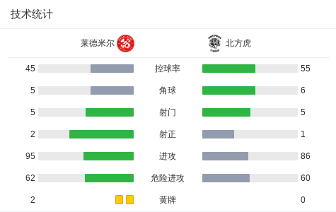莱德米尔0-0北方虎,势均力敌 足球资讯 发布时间: 2026年4月25日 阅读时间: 少于1 分钟 FacebookXPinterestWhatsApp 莱德米尔0-0北方虎,势均力敌 北京时间4月25日澳大利亚威尔士甲级联赛 联赛 第12轮,莱德米尔主场对阵北方虎。最终比分莱德米尔 0–0 北方虎。 点击查看本场比赛详细数据>> 技术统计 FacebookXPinterestWhatsApp 1823100https://1823100.com 红单推荐 021 西甲 奥萨苏纳vs塞维利亚 红单推荐 2026年4月26日 013 英足总杯 切尔西(中)vs利兹联 红单推荐 2026年4月26日 023 英超 阿森纳vs纽卡斯尔 红单推荐 2026年4月25日 016 英超 狼队vs热刺 红单推荐 2026年4月25日 013 英超 桑德兰vs诺丁汉 红单推荐 2026年4月24日 热门资讯 三人20+!火箭21分逆转太阳7连胜 KD24分阿门22+11+8 篮球资讯 2026年4月8日 约基奇第198次三双!掘金大胜灰熊豪取10连胜 穆雷26+7+5 篮球资讯 2026年4月9日 002 欧协联 巴列卡诺vs雅典AEK 红单推荐 2026年4月9日 003 欧冠 利物浦vs巴黎圣日耳曼 红单推荐 2026年4月14日 004 欧冠 巴萨vs马竞 红单推荐 2026年4月8日