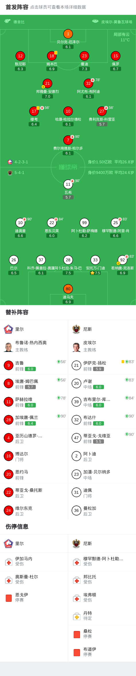 里尔0-0尼斯,秋色平分 足球资讯 发布时间: 2026年4月19日 阅读时间: 少于1 分钟 FacebookXPinterestWhatsApp 里尔0-0尼斯,秋色平分 北京时间4月19日,法国足球顶级联赛第30轮展开较量,里尔坐镇主场迎来尼斯的挑战。全场比赛结束,双方均未攻破对方球门,最终里尔与尼斯0-0握手言和。 点击查看本场比赛详细数据>> 点击查看法甲完整积分榜>> 球队阵容 技术统计 FacebookXPinterestWhatsApp 1823100https://1823100.com 红单推荐 005 西甲 巴列卡诺vs西班牙人 红单推荐 2026年4月23日 003 西甲 莱万特vs塞维利亚 红单推荐 2026年4月23日 015 西甲 巴萨vs塞尔塔 红单推荐 2026年4月22日 012 英超 伯恩茅斯vs利兹联 红单推荐 2026年4月22日 007 意杯 国际米兰vs科莫 红单推荐 2026年4月21日 热门资讯 萨拉戈萨U19 0-0乌德山U19,双方握手言和 足球资讯 2026年4月12日 萨拉赫安菲尔德英超进108球,联赛历史单座球场进球仅次于亨利 足球资讯 2026年4月12日 萨拉赫英超打入157粒非点球进球,追平阿圭罗列历史第五 足球资讯 2026年4月12日 郑大世:森保一执教风格很有人情味;日本队还得日本人执教 足球资讯 2026年4月23日 萨拉赫英超参与250粒非点球进球,成历史第五人 足球资讯 2026年4月12日