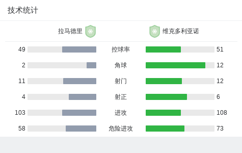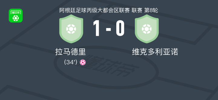 拉马德里1-0维克多利亚诺 足球资讯 发布时间: 2026年4月18日 阅读时间: 少于1 分钟 FacebookXPinterestWhatsApp 拉马德里1-0维克多利亚诺 北京时间4月18日阿根廷足球丙级大都会区联赛 联赛 第8轮,拉马德里主场对阵维克多利亚诺。最终比分拉马德里 1–0 维克多利亚诺。 点击查看本场比赛详细数据>> 精彩瞬间 第34分钟,维克多利亚诺球员自摆乌龙。 技术统计 FacebookXPinterestWhatsApp 1823100https://1823100.com 红单推荐 005 西甲 巴列卡诺vs西班牙人 红单推荐 2026年4月23日 003 西甲 莱万特vs塞维利亚 红单推荐 2026年4月23日 015 西甲 巴萨vs塞尔塔 红单推荐 2026年4月22日 012 英超 伯恩茅斯vs利兹联 红单推荐 2026年4月22日 007 意杯 国际米兰vs科莫 红单推荐 2026年4月21日 热门资讯 萨拉戈萨U19 0-0乌德山U19,双方握手言和 足球资讯 2026年4月12日 曼撒肯0-0哈马索斯,秋色平分 足球资讯 2026年4月23日 萨拉赫安菲尔德英超进108球,联赛历史单座球场进球仅次于亨利 足球资讯 2026年4月12日 萨拉赫英超打入157粒非点球进球,追平阿圭罗列历史第五 足球资讯 2026年4月12日 郑大世:森保一执教风格很有人情味;日本队还得日本人执教 足球资讯 2026年4月23日