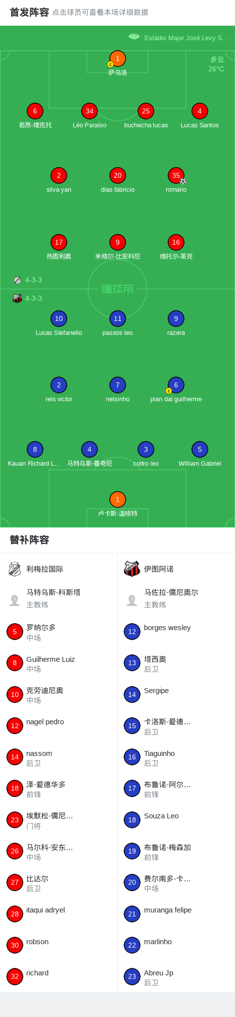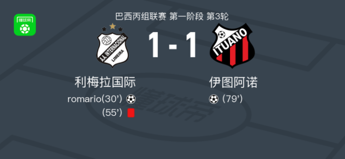 利梅拉国际1-1伊图阿诺 足球资讯 发布时间: 2026年4月19日 阅读时间: 少于1 分钟 FacebookXPinterestWhatsApp 利梅拉国际1-1伊图阿诺 北京时间4月19日巴西丙组联赛 第一阶段 第3轮,利梅拉国际主场对阵伊图阿诺。利梅拉国际romario破门。最终比分利梅拉国际 1–1 伊图阿诺。 点击查看本场比赛详细数据>> 点击查看巴丙完整积分榜>> 精彩瞬间 第30分钟,利梅拉国际球员romario打入一球。 第55分钟,利梅拉国际球队吃到红牌。 第79分钟,伊图阿诺球员打入一球。 球队阵容 技术统计 FacebookXPinterestWhatsApp 1823100https://1823100.com 红单推荐 015 西甲 巴萨vs塞尔塔 红单推荐 2026年4月22日 012 英超 伯恩茅斯vs利兹联 红单推荐 2026年4月22日 007 意杯 国际米兰vs科莫 红单推荐 2026年4月21日 005 西甲 毕尔巴鄂竞技vs奥萨苏纳 红单推荐 2026年4月21日 001 意甲 莱切vs佛罗伦萨 红单推荐 2026年4月20日 热门资讯 萨拉戈萨U19 0-0乌德山U19,双方握手言和 足球资讯 2026年4月12日 克莱普尔1-0巴拉卡斯体育,Aaron Caraballo一锤定音 足球资讯 2026年4月13日 萨拉赫安菲尔德英超进108球,联赛历史单座球场进球仅次于亨利 足球资讯 2026年4月12日 萨拉赫英超打入157粒非点球进球,追平阿圭罗列历史第五 足球资讯 2026年4月12日 郑大世:森保一执教风格很有人情味;日本队还得日本人执教 足球资讯 2026年4月23日