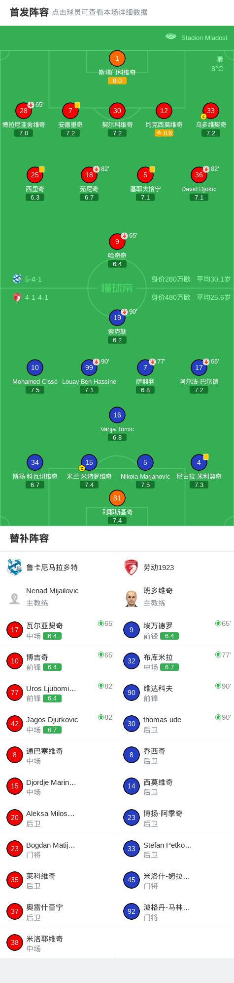 鲁卡尼马拉多特0-0劳动1923,平分秋色 足球资讯 发布时间: 2026年4月24日 阅读时间: 少于1 分钟 FacebookXPinterestWhatsApp 鲁卡尼马拉多特0-0劳动1923,平分秋色 北京时间4月24日塞尔维亚足球超级联赛 保级组 第2轮,鲁卡尼马拉多特主场对阵劳动1923。最终比分鲁卡尼马拉多特 0–0 劳动1923。 点击查看本场比赛详细数据>> 点击查看塞尔超完整积分榜>> 球队阵容 技术统计 FacebookXPinterestWhatsApp 1823100https://1823100.com 红单推荐 005 西甲 巴列卡诺vs西班牙人 红单推荐 2026年4月23日 003 西甲 莱万特vs塞维利亚 红单推荐 2026年4月23日 015 西甲 巴萨vs塞尔塔 红单推荐 2026年4月22日 012 英超 伯恩茅斯vs利兹联 红单推荐 2026年4月22日 007 意杯 国际米兰vs科莫 红单推荐 2026年4月21日 热门资讯 萨拉戈萨U19 0-0乌德山U19,双方握手言和 足球资讯 2026年4月12日 019 英超 曼城vs阿森纳 红单推荐 2026年4月19日 007 英冠 伊普斯维奇vs米德尔斯堡 红单推荐 2026年4月19日 主裁判琼斯谈穆阿尼倒地未获点:桑德兰后卫明显先触球 足球资讯 2026年4月12日 郑大世:森保一执教风格很有人情味;日本队还得日本人执教 足球资讯 2026年4月23日