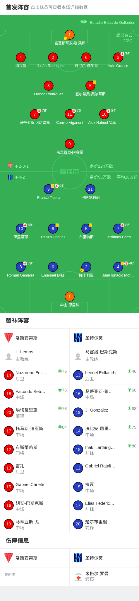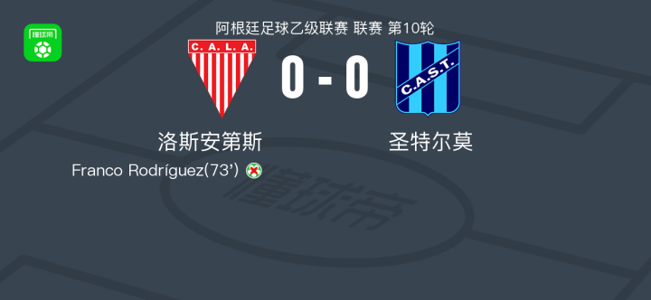 洛斯安第斯0-0圣特尔莫,两队各拿一分 足球资讯 发布时间: 2026年4月19日 阅读时间: 少于1 分钟 FacebookXPinterestWhatsApp 洛斯安第斯0-0圣特尔莫,两队各拿一分 北京时间4月19日阿根廷足球乙级联赛 联赛 第10轮,洛斯安第斯主场对阵圣特尔莫。最终比分洛斯安第斯 0–0 圣特尔莫。 点击查看本场比赛详细数据>> 点击查看阿乙完整积分榜>> 精彩瞬间 第73分钟,洛斯安第斯球员Franco Rodríguez将点球罚丢。 球队阵容 技术统计 FacebookXPinterestWhatsApp 1823100https://1823100.com 红单推荐 015 西甲 巴萨vs塞尔塔 红单推荐 2026年4月22日 012 英超 伯恩茅斯vs利兹联 红单推荐 2026年4月22日 007 意杯 国际米兰vs科莫 红单推荐 2026年4月21日 005 西甲 毕尔巴鄂竞技vs奥萨苏纳 红单推荐 2026年4月21日 001 意甲 莱切vs佛罗伦萨 红单推荐 2026年4月20日 热门资讯 萨拉戈萨U19 0-0乌德山U19,双方握手言和 足球资讯 2026年4月12日 克莱普尔1-0巴拉卡斯体育,Aaron Caraballo一锤定音 足球资讯 2026年4月13日 007 英冠 伊普斯维奇vs米德尔斯堡 红单推荐 2026年4月19日 019 英超 曼城vs阿森纳 红单推荐 2026年4月19日 萨拉赫安菲尔德英超进108球,联赛历史单座球场进球仅次于亨利 足球资讯 2026年4月12日