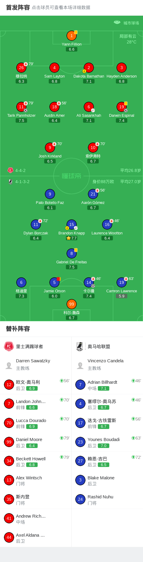第21分钟,奥马哈联盟球员Brandon Knapp助攻卡尔曼打入一球。