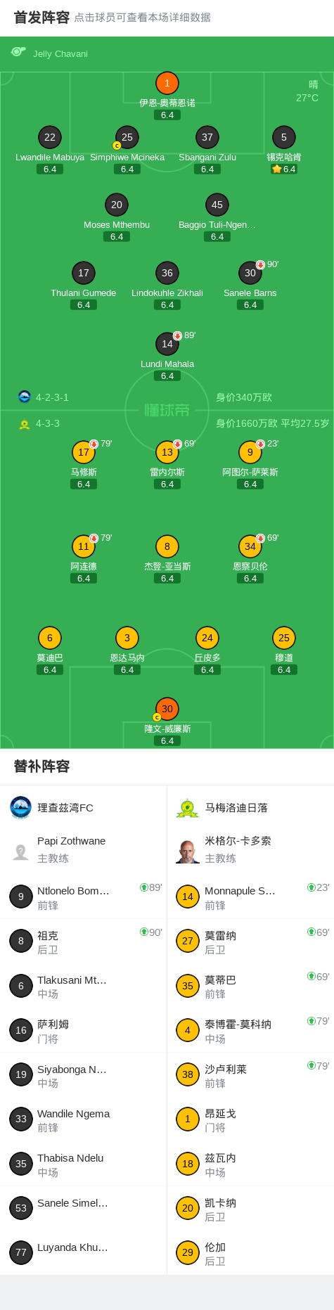 北京时间4月26日南非超级联赛 联赛 第26轮,理查兹湾FC主场对阵马梅洛迪日落。最终比分理查兹湾FC 0–0 马梅洛迪日落。