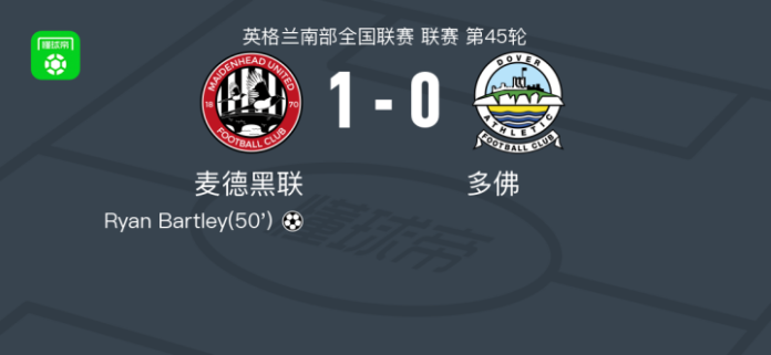 麦德黑联1-0多佛,Ryan Bartley一击制胜 足球资讯 发布时间: 2026年4月19日 阅读时间: 少于1 分钟 FacebookXPinterestWhatsApp 麦德黑联1-0多佛,Ryan Bartley一击制胜 北京时间4月18日英格兰南部全国联赛 联赛 第45轮,麦德黑联主场对阵多佛。麦德黑联Ryan Bartley破门。最终比分麦德黑联 1–0 多佛。 点击查看本场比赛详细数据>> 精彩瞬间 第50分钟,麦德黑联球员Ryan Bartley打入一球。 技术统计 FacebookXPinterestWhatsApp 1823100https://1823100.com 红单推荐 009 挪超 博德闪耀vs奥勒松 红单推荐 2026年4月18日 024 英超 切尔西vs曼联 红单推荐 2026年4月18日 009 朗斯vs图卢兹 红单推荐 2026年4月17日 008 意甲 国米vs卡利亚里 红单推荐 2026年4月17日 002 欧联 诺丁汉vs波尔图 红单推荐 2026年4月16日 热门资讯 012 英超 诺丁汉森林vs阿斯顿维拉 红单推荐 2026年4月12日 约基奇第198次三双!掘金大胜灰熊豪取10连胜 穆雷26+7+5 篮球资讯 2026年4月9日 三人20+!火箭21分逆转太阳7连胜 KD24分阿门22+11+8 篮球资讯 2026年4月8日 002 欧协联 巴列卡诺vs雅典AEK 红单推荐 2026年4月9日 008 意甲 国米vs卡利亚里 红单推荐 2026年4月17日