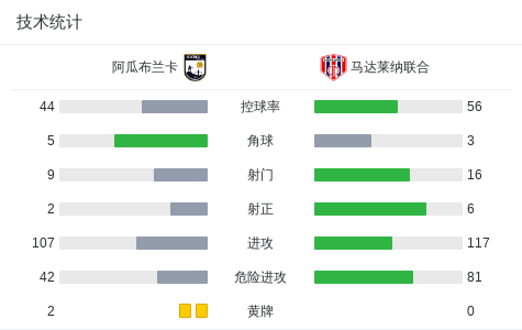 下半场补时第5分钟,马达莱纳联合球员Cristian Iguarán打入一球。
