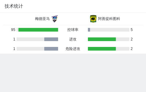 上半场补时第2分钟,梅德亚马球员打入一球。