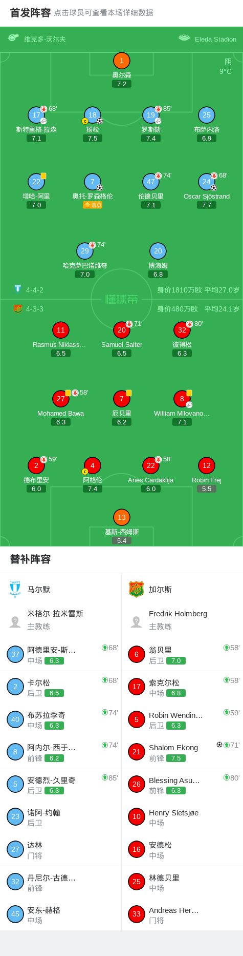马尔默3-1加尔斯,奥托-罗森格伦建功,Oscar Sjöstrand破门