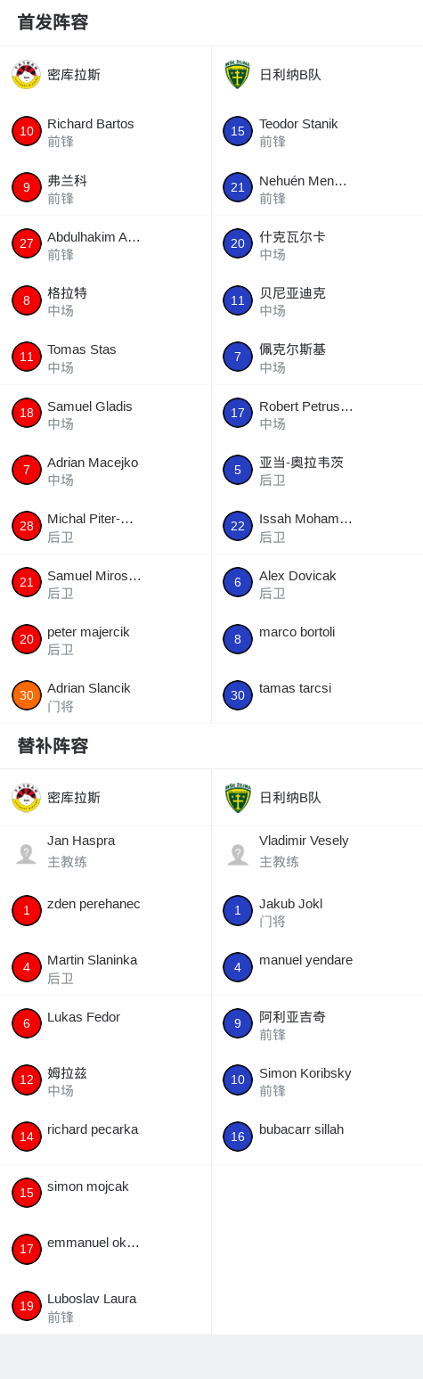 密库拉斯2-0日利纳B队 足球资讯 发布时间: 2026年4月19日 阅读时间: 少于1 分钟 FacebookXPinterestWhatsApp 密库拉斯2-0日利纳B队 北京时间4月18日斯洛伐克足球甲级联赛 联赛 第25轮,密库拉斯主场对阵日利纳B队。最终比分密库拉斯 2–0 日利纳B队。 点击查看本场比赛详细数据>> 精彩瞬间 第62分钟,密库拉斯球员打入一球。 第69分钟,密库拉斯球员打入一球。 球队阵容 技术统计 FacebookXPinterestWhatsApp 1823100https://1823100.com 红单推荐 013 英超 桑德兰vs诺丁汉 红单推荐 2026年4月24日 014 西甲 贝蒂斯vs皇马 红单推荐 2026年4月24日 005 西甲 巴列卡诺vs西班牙人 红单推荐 2026年4月23日 003 西甲 莱万特vs塞维利亚 红单推荐 2026年4月23日 015 西甲 巴萨vs塞尔塔 红单推荐 2026年4月22日 热门资讯 023 英超 利物浦vs富勒姆 红单推荐 2026年4月11日 005 英超 曼联vs利兹联 红单推荐 2026年4月13日 012 英超 诺丁汉森林vs阿斯顿维拉 红单推荐 2026年4月12日 001 欧联杯 塞尔塔vs弗莱堡 红单推荐 2026年4月16日 002 欧联 诺丁汉vs波尔图 红单推荐 2026年4月16日