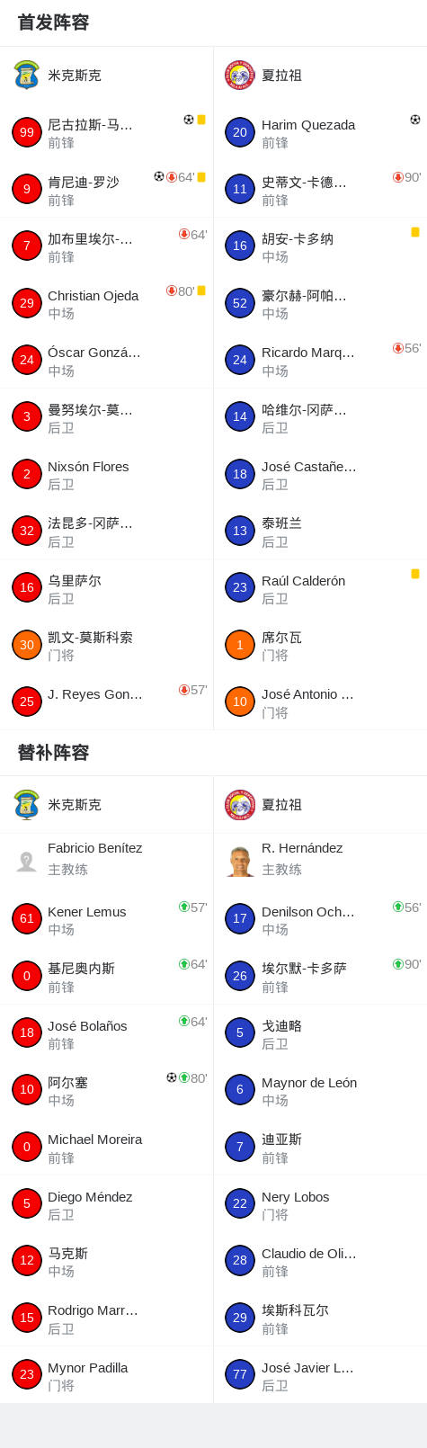 第59分钟,米克斯克球员肯尼迪-罗沙打入一球。