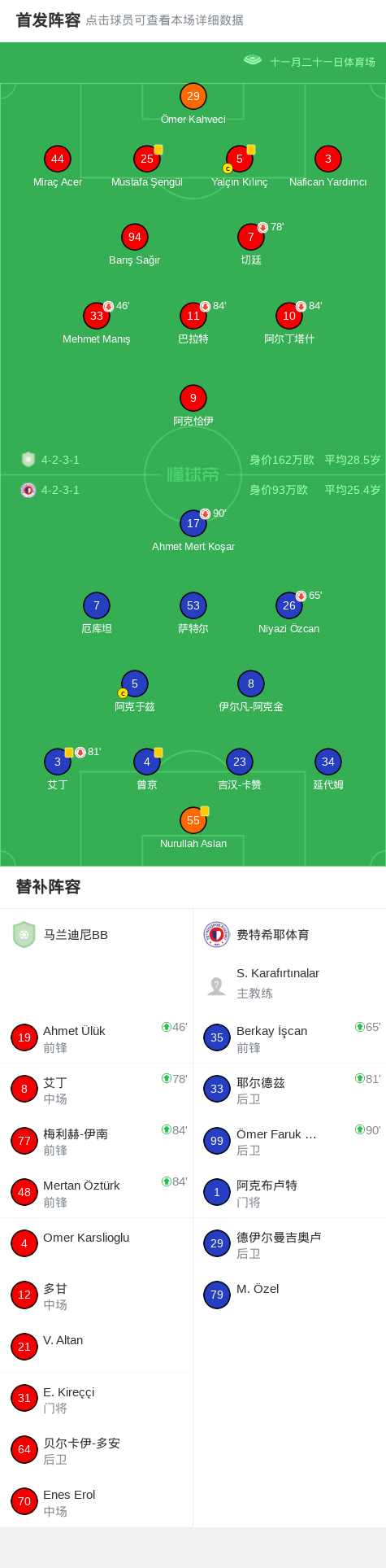 马兰迪尼BB0-0费特希耶体育,难分伯仲 足球资讯 发布时间: 2026年4月25日 阅读时间: 少于1 分钟 FacebookXPinterestWhatsApp 马兰迪尼BB0-0费特希耶体育,难分伯仲 北京时间4月25日土耳其乙级联赛 红组 第34轮,马兰迪尼BB主场对阵费特希耶体育。最终比分马兰迪尼BB 0–0 费特希耶体育。 点击查看本场比赛详细数据>> 球队阵容 FacebookXPinterestWhatsApp 1823100https://1823100.com 红单推荐 023 英超 阿森纳vs纽卡斯尔 红单推荐 2026年4月25日 016 英超 狼队vs热刺 红单推荐 2026年4月25日 013 英超 桑德兰vs诺丁汉 红单推荐 2026年4月24日 014 西甲 贝蒂斯vs皇马 红单推荐 2026年4月24日 005 西甲 巴列卡诺vs西班牙人 红单推荐 2026年4月23日 热门资讯 012 英超 诺丁汉森林vs阿斯顿维拉 红单推荐 2026年4月12日 001 欧联杯 塞尔塔vs弗莱堡 红单推荐 2026年4月16日 023 英超 阿森纳vs纽卡斯尔 红单推荐 2026年4月25日 002 欧联 诺丁汉vs波尔图 红单推荐 2026年4月16日 三人20+!火箭21分逆转太阳7连胜 KD24分阿门22+11+8 篮球资讯 2026年4月8日