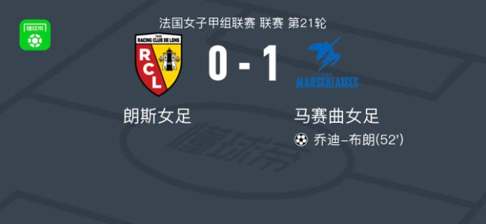 马赛曲女足1-0朗斯女足,乔迪-布朗制胜 足球资讯 发布时间: 2026年4月26日 阅读时间: 少于1 分钟 FacebookXPinterestWhatsApp 马赛曲女足1-0朗斯女足,乔迪-布朗制胜 北京时间4月26日法国女子甲组联赛 联赛 第21轮,朗斯女足主场对阵马赛曲女足。马赛曲女足乔迪-布朗破门。最终比分朗斯女足 0–1 马赛曲女足。 点击查看本场比赛详细数据>> 点击查看法女甲完整积分榜>> 精彩瞬间 第52分钟,马赛曲女足球员布尔古安助攻乔迪-布朗打入一球。 球队阵容 技术统计 FacebookXPinterestWhatsApp 1823100https://1823100.com 红单推荐 023 英超 阿森纳vs纽卡斯尔 红单推荐 2026年4月25日 016 英超 狼队vs热刺 红单推荐 2026年4月25日 013 英超 桑德兰vs诺丁汉 红单推荐 2026年4月24日 014 西甲 贝蒂斯vs皇马 红单推荐 2026年4月24日 005 西甲 巴列卡诺vs西班牙人 红单推荐 2026年4月23日 热门资讯 001 意甲 莱切vs佛罗伦萨 红单推荐 2026年4月20日 003 英超 水晶宫vs西汉姆联 红单推荐 2026年4月20日 023 英超 阿森纳vs纽卡斯尔 红单推荐 2026年4月25日 三人20+!火箭21分逆转太阳7连胜 KD24分阿门22+11+8 篮球资讯 2026年4月8日 约基奇第198次三双!掘金大胜灰熊豪取10连胜 穆雷26+7+5 篮球资讯 2026年4月9日