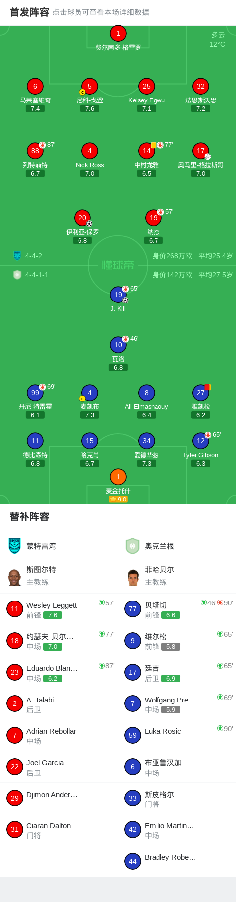 第15分钟,奥克兰根球员J. Kiil打入一球。