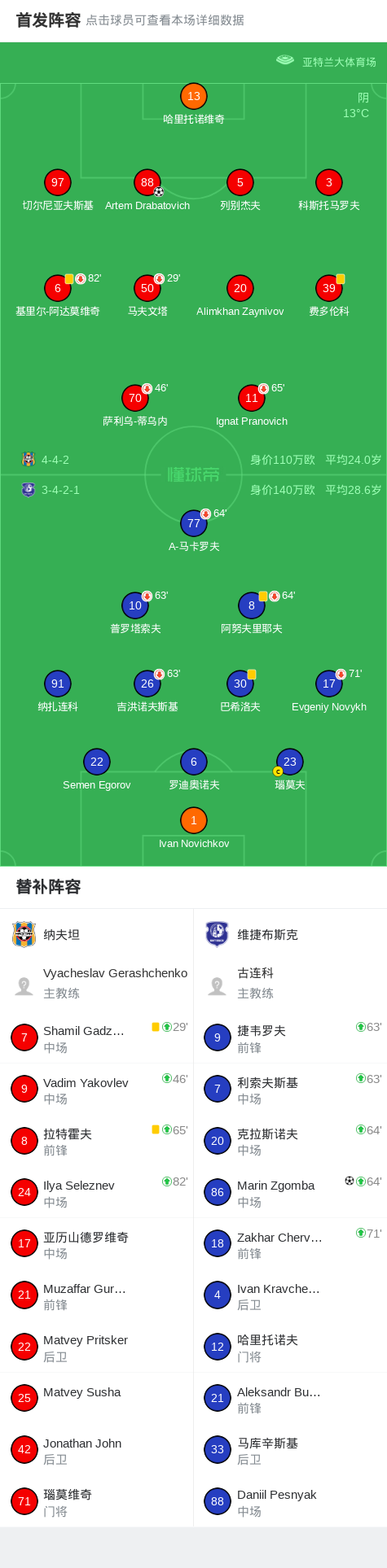 第54分钟,纳夫坦球员Artem Drabatovich打入一球。