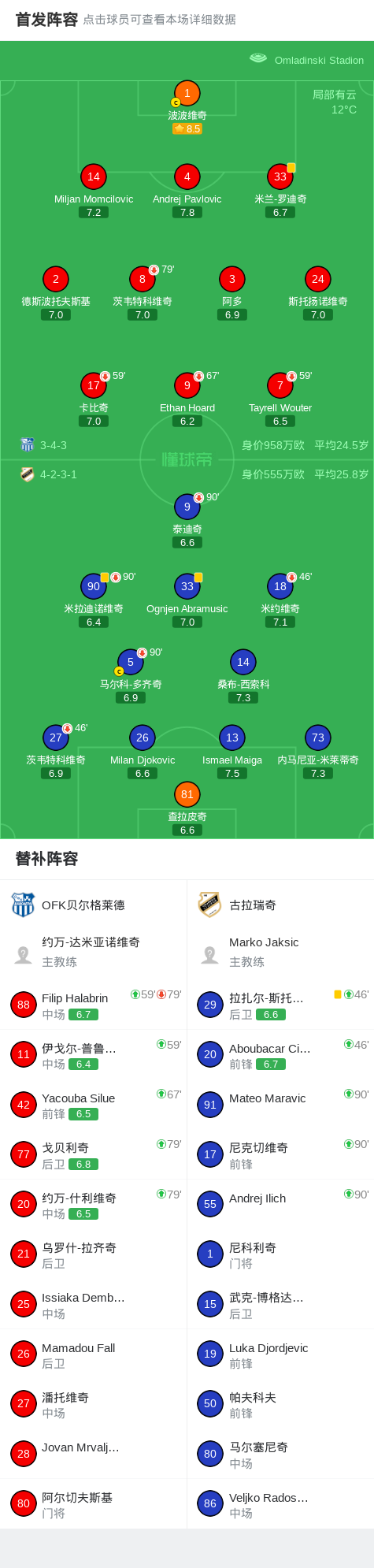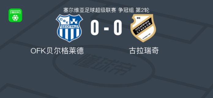 OFK贝尔格莱德0-0古拉瑞奇,双方互交白卷 足球资讯 发布时间: 2026年4月23日 阅读时间: 少于1 分钟 FacebookXPinterestWhatsApp OFK贝尔格莱德0-0古拉瑞奇,双方互交白卷 北京时间4月23日塞尔维亚足球超级联赛 争冠组 第2轮,OFK贝尔格莱德主场对阵古拉瑞奇。最终比分OFK贝尔格莱德 0–0 古拉瑞奇。 点击查看本场比赛详细数据>> 点击查看塞尔超完整积分榜>> 球队阵容 技术统计 FacebookXPinterestWhatsApp 1823100https://1823100.com 红单推荐 005 西甲 巴列卡诺vs西班牙人 红单推荐 2026年4月23日 003 西甲 莱万特vs塞维利亚 红单推荐 2026年4月23日 015 西甲 巴萨vs塞尔塔 红单推荐 2026年4月22日 012 英超 伯恩茅斯vs利兹联 红单推荐 2026年4月22日 007 意杯 国际米兰vs科莫 红单推荐 2026年4月21日 热门资讯 萨拉戈萨U19 0-0乌德山U19,双方握手言和 足球资讯 2026年4月12日 019 英超 曼城vs阿森纳 红单推荐 2026年4月19日 007 英冠 伊普斯维奇vs米德尔斯堡 红单推荐 2026年4月19日 主裁判琼斯谈穆阿尼倒地未获点:桑德兰后卫明显先触球 足球资讯 2026年4月12日 郑大世:森保一执教风格很有人情味;日本队还得日本人执教 足球资讯 2026年4月23日