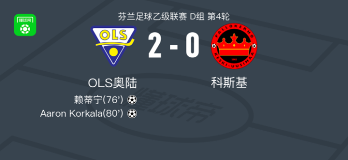 OLS奥陆2-0科斯基,赖蒂宁破门,Aaron Korkala锦上添花 足球资讯 发布时间: 2026年4月25日 阅读时间: 少于1 分钟 FacebookXPinterestWhatsApp OLS奥陆2-0科斯基,赖蒂宁破门,Aaron Korkala锦上添花 北京时间4月25日芬兰足球乙级联赛 D组 第4轮,OLS奥陆主场对阵科斯基。OLS奥陆赖蒂宁破门,Aaron Korkala破门。最终比分OLS奥陆 2–0 科斯基。 点击查看本场比赛详细数据>> 精彩瞬间 第76分钟,OLS奥陆球员赖蒂宁打入一球。 第80分钟,OLS奥陆球员Aaron Korkala打入一球。 技术统计 FacebookXPinterestWhatsApp 1823100https://1823100.com 红单推荐 023 英超 阿森纳vs纽卡斯尔 红单推荐 2026年4月25日 016 英超 狼队vs热刺 红单推荐 2026年4月25日 013 英超 桑德兰vs诺丁汉 红单推荐 2026年4月24日 014 西甲 贝蒂斯vs皇马 红单推荐 2026年4月24日 005 西甲 巴列卡诺vs西班牙人 红单推荐 2026年4月23日 热门资讯 012 英超 诺丁汉森林vs阿斯顿维拉 红单推荐 2026年4月12日 001 欧联杯 塞尔塔vs弗莱堡 红单推荐 2026年4月16日 002 欧联 诺丁汉vs波尔图 红单推荐 2026年4月16日 三人20+!火箭21分逆转太阳7连胜 KD24分阿门22+11+8 篮球资讯 2026年4月8日 约基奇第198次三双!掘金大胜灰熊豪取10连胜 穆雷26+7+5 篮球资讯 2026年4月9日