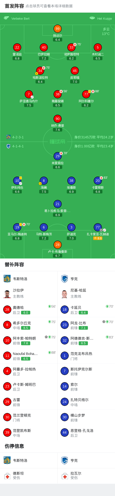 第76分钟,韦斯特洛球员萨亚德马内什助攻阿丰索-帕特朗打入一球。