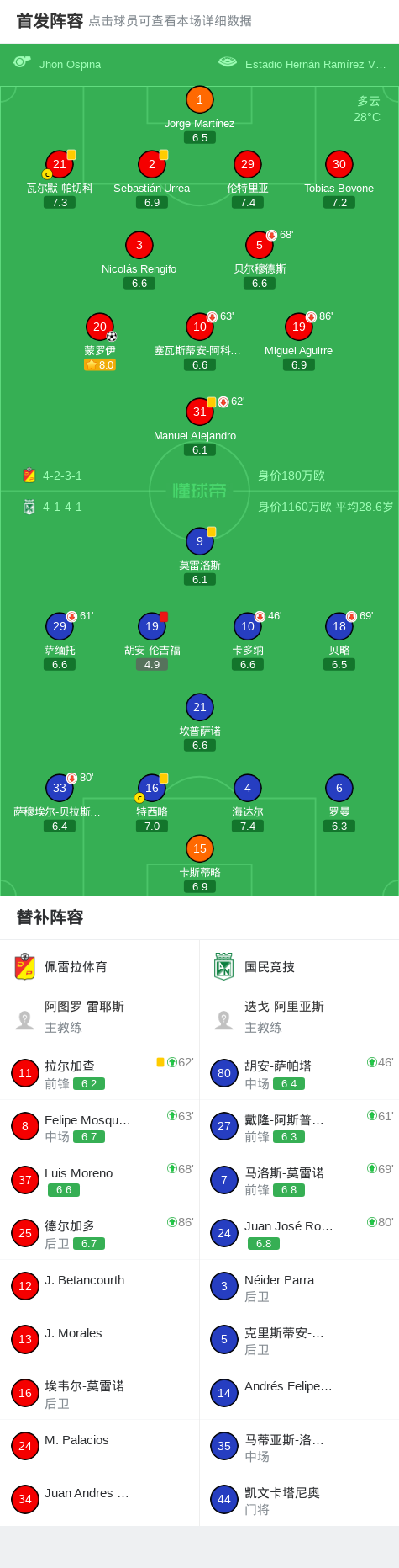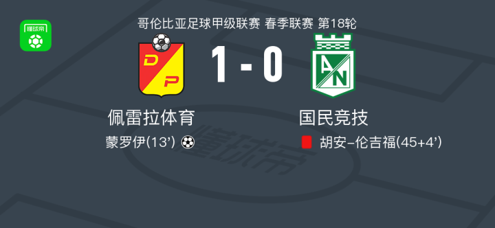 佩雷拉体育1-0国民竞技,蒙罗伊一剑封喉 足球资讯 发布时间: 2026年4月26日 阅读时间: 少于1 分钟 FacebookXPinterestWhatsApp 佩雷拉体育1-0国民竞技,蒙罗伊一剑封喉 北京时间4月26日哥伦比亚足球甲级联赛 春季联赛 第18轮,佩雷拉体育主场对阵国民竞技。佩雷拉体育蒙罗伊破门。最终比分佩雷拉体育 1–0 国民竞技。 点击查看本场比赛详细数据>> 点击查看哥伦甲完整积分榜>> 精彩瞬间 第13分钟,佩雷拉体育球员蒙罗伊打入一球。 上半场补时第4分钟,国民竞技球队胡安-伦吉福吃到红牌。 球队阵容 技术统计 FacebookXPinterestWhatsApp 1823100https://1823100.com 红单推荐 023 英超 阿森纳vs纽卡斯尔 红单推荐 2026年4月25日 016 英超 狼队vs热刺 红单推荐 2026年4月25日 013 英超 桑德兰vs诺丁汉 红单推荐 2026年4月24日 014 西甲 贝蒂斯vs皇马 红单推荐 2026年4月24日 005 西甲 巴列卡诺vs西班牙人 红单推荐 2026年4月23日 热门资讯 005 西甲 巴列卡诺vs西班牙人 红单推荐 2026年4月23日 023 英超 阿森纳vs纽卡斯尔 红单推荐 2026年4月25日 003 西甲 莱万特vs塞维利亚 红单推荐 2026年4月23日 三人20+!火箭21分逆转太阳7连胜 KD24分阿门22+11+8 篮球资讯 2026年4月8日 001 意甲 莱切vs佛罗伦萨 红单推荐 2026年4月20日