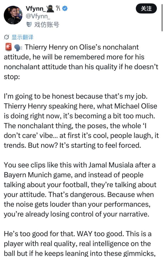 近日一段亨利“批评奥利塞”的所谓言论在社交媒体上流出,本来不是很想发帖子辟谣,实在是有点离谱,但因为有人转发,所以决定还是开个帖子说一下。
