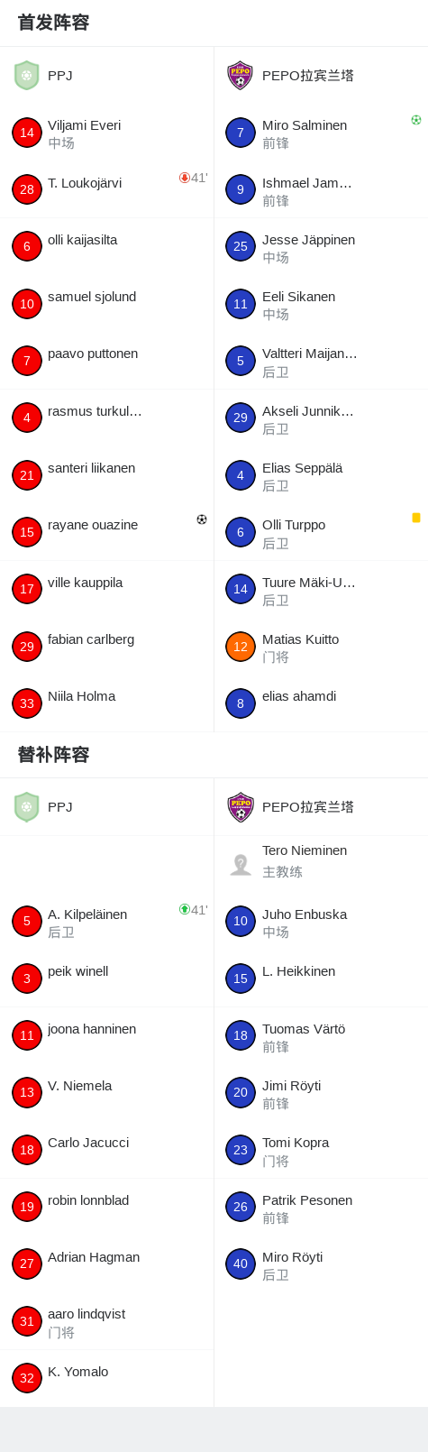 PPJ1-1PEPO拉宾兰塔,rayane ouazine破门,Miro Salminen救主