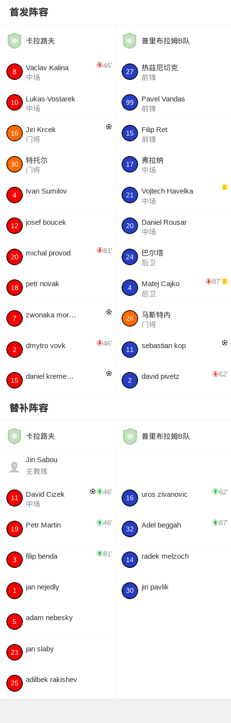 卡拉路夫4-1大胜普里布拉姆B队,zwonaka moravec、David Cizek破门
