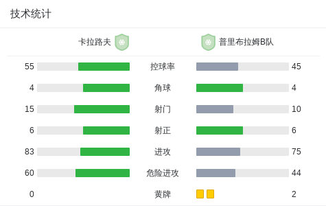 第48分钟,卡拉路夫球员Jiri Krcek打入一球。