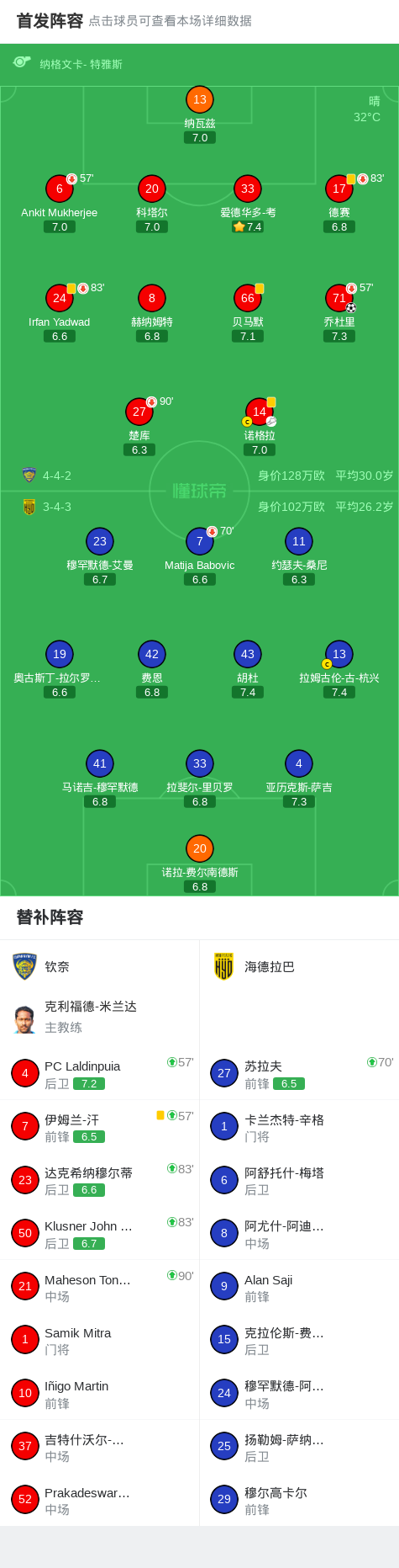 钦奈1-0海德拉巴,乔杜里一击制胜 足球资讯 发布时间: 2026年4月17日 阅读时间: 少于1 分钟 FacebookXPinterestWhatsApp 钦奈1-0海德拉巴,乔杜里一击制胜 北京时间4月17日印度足球超级联赛 联赛 第9轮,钦奈主场对阵海德拉巴。钦奈乔杜里破门。最终比分钦奈 1–0 海德拉巴。 点击查看本场比赛详细数据>> 点击查看印度超完整积分榜>> 精彩瞬间 第11分钟,钦奈球员诺格拉助攻乔杜里打入一球。 球队阵容 技术统计 FacebookXPinterestWhatsApp 1823100https://1823100.com 红单推荐 015 西甲 巴萨vs塞尔塔 红单推荐 2026年4月22日 012 英超 伯恩茅斯vs利兹联 红单推荐 2026年4月22日 007 意杯 国际米兰vs科莫 红单推荐 2026年4月21日 005 西甲 毕尔巴鄂竞技vs奥萨苏纳 红单推荐 2026年4月21日 001 意甲 莱切vs佛罗伦萨 红单推荐 2026年4月20日 热门资讯 萨拉戈萨U19 0-0乌德山U19,双方握手言和 足球资讯 2026年4月12日 007 英冠 伊普斯维奇vs米德尔斯堡 红单推荐 2026年4月19日 克莱普尔1-0巴拉卡斯体育,Aaron Caraballo一锤定音 足球资讯 2026年4月13日 萨拉赫英超参与250粒非点球进球,成历史第五人 足球资讯 2026年4月12日 019 英超 曼城vs阿森纳 红单推荐 2026年4月19日