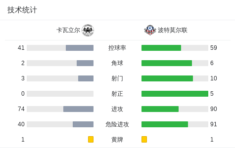 卡瓦立尔0-0波特莫尔联,势均力敌 足球资讯 发布时间: 2026年4月16日 阅读时间: 少于1 分钟 FacebookXPinterestWhatsApp 卡瓦立尔0-0波特莫尔联,势均力敌 北京时间4月16日牙买加足球超级联赛 联赛 第34轮,卡瓦立尔主场对阵波特莫尔联。最终比分卡瓦立尔 0–0 波特莫尔联。 点击查看本场比赛详细数据>> 技术统计 FacebookXPinterestWhatsApp 1823100https://1823100.com 红单推荐 001 意甲 莱切vs佛罗伦萨 红单推荐 2026年4月20日 003 英超 水晶宫vs西汉姆联 红单推荐 2026年4月20日 019 英超 曼城vs阿森纳 红单推荐 2026年4月19日 007 英冠 伊普斯维奇vs米德尔斯堡 红单推荐 2026年4月19日 009 挪超 博德闪耀vs奥勒松 红单推荐 2026年4月18日 热门资讯 雷帕斯3-2逆转基芬,oliver helttunen、Timur Saltykov破门 足球资讯 2026年4月19日 001 欧联杯 塞尔塔vs弗莱堡 红单推荐 2026年4月16日 002 欧联 诺丁汉vs波尔图 红单推荐 2026年4月16日 阿韦洛亚:卡马文加拥有我和俱乐部的信任,希望他待很多年 足球资讯 2026年4月20日 还能这么玩,奥德里奥索拉夺冠后把女儿塞进了国王杯奖杯里 足球资讯 2026年4月20日
