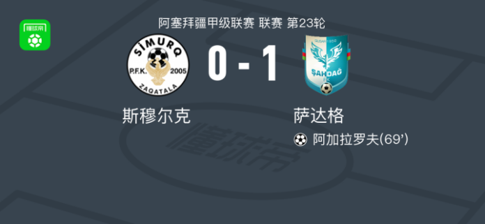萨达格1-0斯穆尔克,阿加拉罗夫一击制胜 足球资讯 发布时间: 2026年4月22日 阅读时间: 少于1 分钟 FacebookXPinterestWhatsApp 萨达格1-0斯穆尔克,阿加拉罗夫一击制胜 北京时间4月22日阿塞拜疆甲级联赛 联赛 第23轮,斯穆尔克主场对阵萨达格。萨达格阿加拉罗夫破门。最终比分斯穆尔克 0–1 萨达格。 点击查看本场比赛详细数据>> 精彩瞬间 第69分钟,萨达格球员阿加拉罗夫打入一球。 技术统计 FacebookXPinterestWhatsApp 1823100https://1823100.com 红单推荐 005 西甲 巴列卡诺vs西班牙人 红单推荐 2026年4月23日 003 西甲 莱万特vs塞维利亚 红单推荐 2026年4月23日 015 西甲 巴萨vs塞尔塔 红单推荐 2026年4月22日 012 英超 伯恩茅斯vs利兹联 红单推荐 2026年4月22日 007 意杯 国际米兰vs科莫 红单推荐 2026年4月21日 热门资讯 萨拉戈萨U19 0-0乌德山U19,双方握手言和 足球资讯 2026年4月12日 萨拉赫安菲尔德英超进108球,联赛历史单座球场进球仅次于亨利 足球资讯 2026年4月12日 萨拉赫英超打入157粒非点球进球,追平阿圭罗列历史第五 足球资讯 2026年4月12日 郑大世:森保一执教风格很有人情味;日本队还得日本人执教 足球资讯 2026年4月23日 萨拉赫英超参与250粒非点球进球,成历史第五人 足球资讯 2026年4月12日