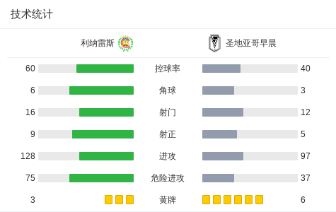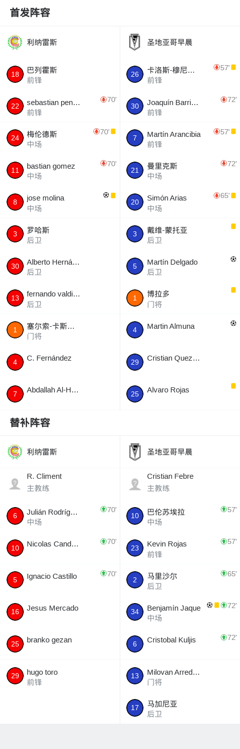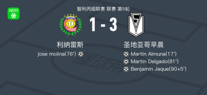 下半场补时第5分钟,圣地亚哥早晨 球员Benjamín Jaque打入一球。