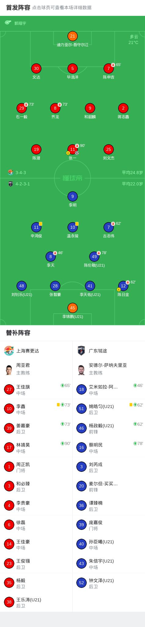 上海赛更达1-0广东铭途,张一绝杀 足球资讯 发布时间: 2026年4月19日 阅读时间: 少于1 分钟 FacebookXPinterestWhatsApp 上海赛更达1-0广东铭途,张一绝杀 北京时间4月19日中国足协杯 第二轮,上海赛更达对阵广东铭途。上海赛更达张一破门。最终比分上海赛更达 1–0 广东铭途。 点击查看本场比赛详细数据>> 点击查看足协杯完整积分榜>> 精彩瞬间 第88分钟,上海赛更达球员张一打入一球。 球队阵容 技术统计 FacebookXPinterestWhatsApp 1823100https://1823100.com 红单推荐 005 西甲 巴列卡诺vs西班牙人 红单推荐 2026年4月23日 003 西甲 莱万特vs塞维利亚 红单推荐 2026年4月23日 015 西甲 巴萨vs塞尔塔 红单推荐 2026年4月22日 012 英超 伯恩茅斯vs利兹联 红单推荐 2026年4月22日 007 意杯 国际米兰vs科莫 红单推荐 2026年4月21日 热门资讯 萨拉戈萨U19 0-0乌德山U19,双方握手言和 足球资讯 2026年4月12日 萨拉赫英超打入157粒非点球进球,追平阿圭罗列历史第五 足球资讯 2026年4月12日 郑大世:森保一执教风格很有人情味;日本队还得日本人执教 足球资讯 2026年4月23日 萨拉赫英超参与250粒非点球进球,成历史第五人 足球资讯 2026年4月12日 曼撒肯0-0哈马索斯,秋色平分 足球资讯 2026年4月23日